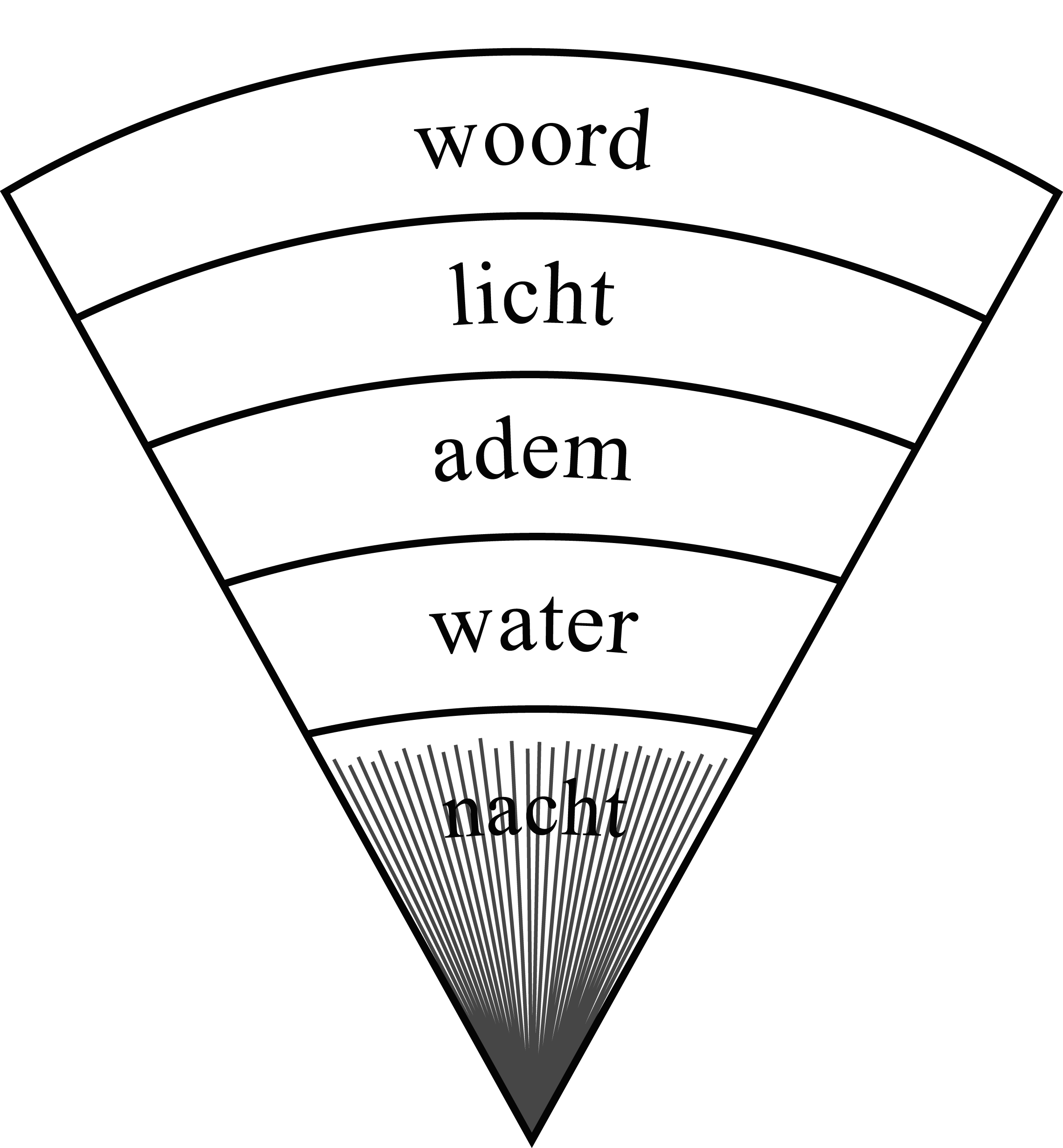 Boven de wateren was de machtige adem van de elohim [de scheppende dhyani-chohans]. Boven de adem verscheen het licht, en boven het licht het Woord . . . dat het geschapen heeft.